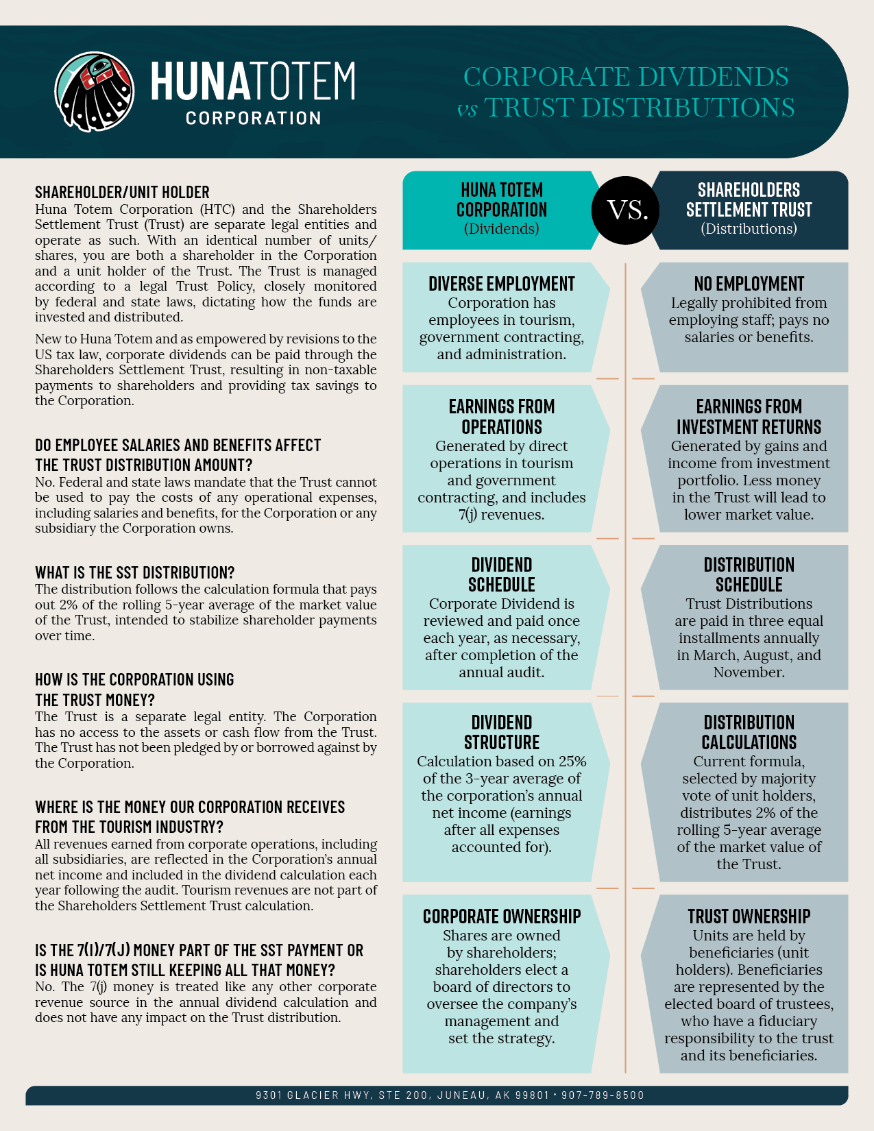 Huna Totem Corporation is dedicated to keeping shareholders informed through open and transparent communication. Our quarterly newsletter offers updates on corporate developments, new initiatives, and affiliate news, while our social media channels and shareholder Facebook page provide regular insights and timely announcements. To stay connected, sign up for shareholder emails or follow us on social media for the latest updates and community highlights.